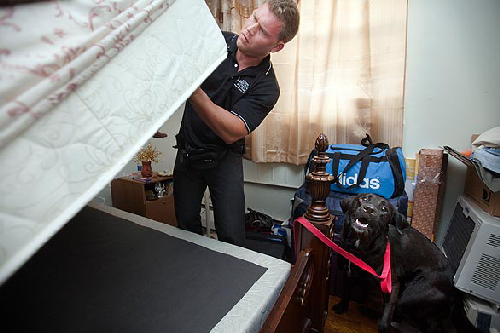Dog Handler Dave Kendrick from SOHO in New York with Cassie the Bed